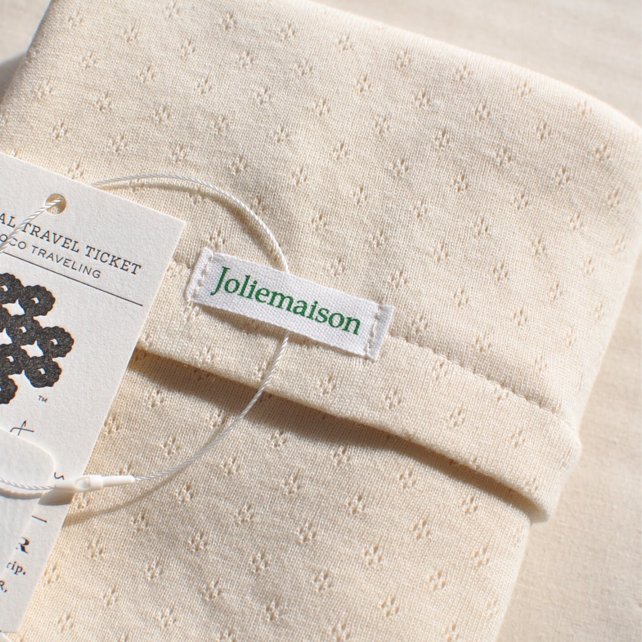 生まれたてのデリケートな肌がトッポンチーノに触れる事を考慮し素材もこだわりました。素材は高品質のオーガニック100%を使用、そのオーガニック素材は産地から加工に至る過程までトレースする事により信頼性を高めています。なにより、ジョリーメゾンのトッポンチーノ形状は赤ちゃんが10ヵ月の間育ったママの子宮の形をサポートしています。