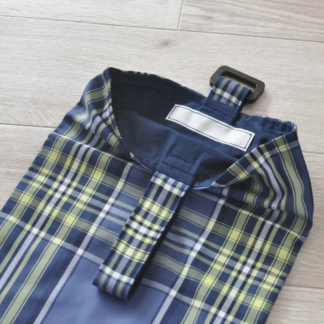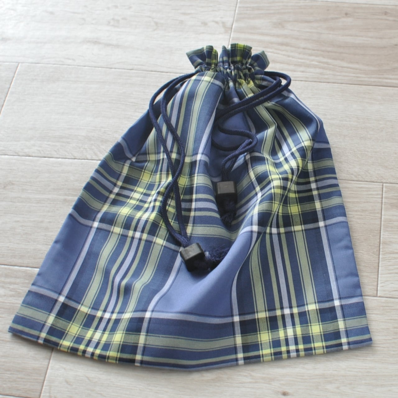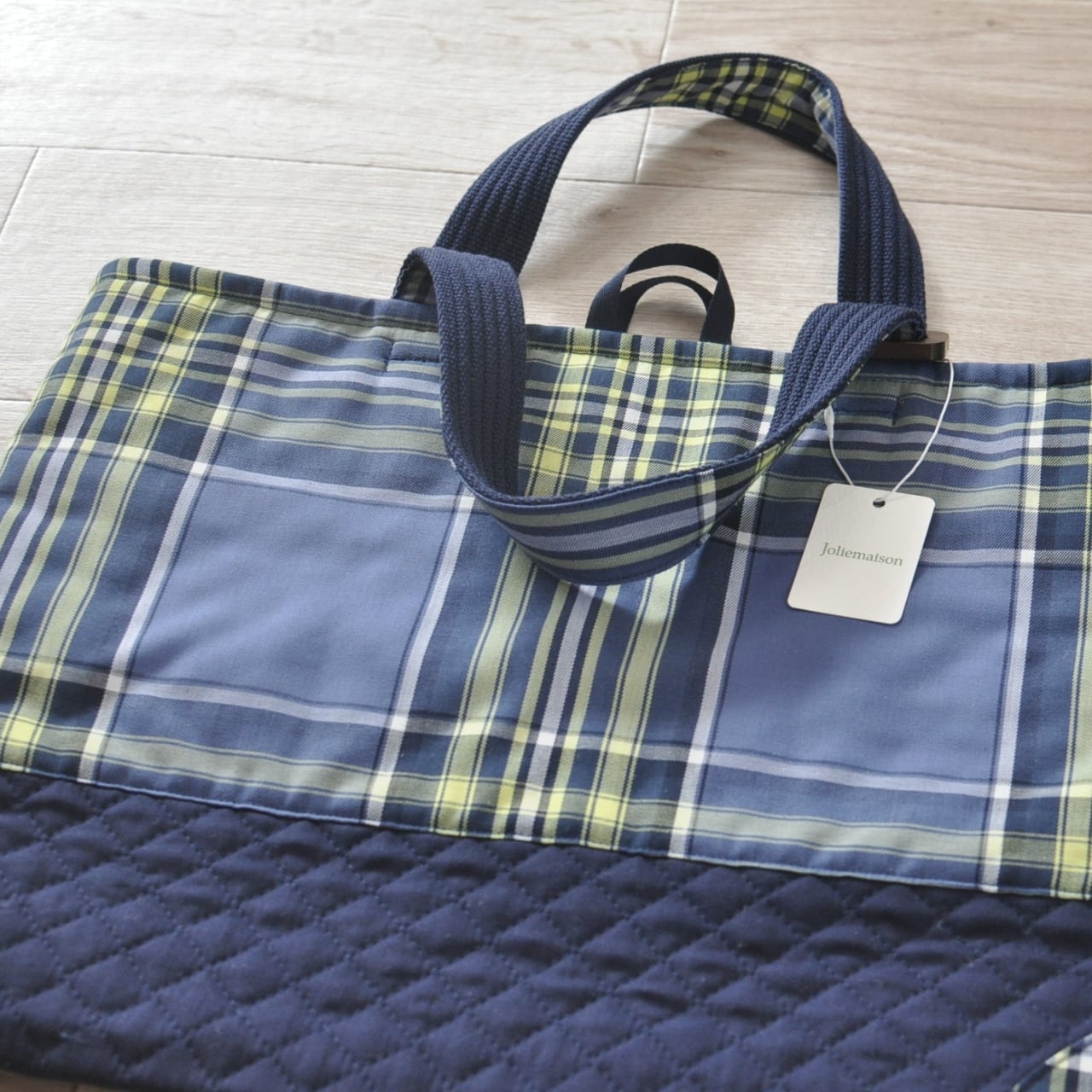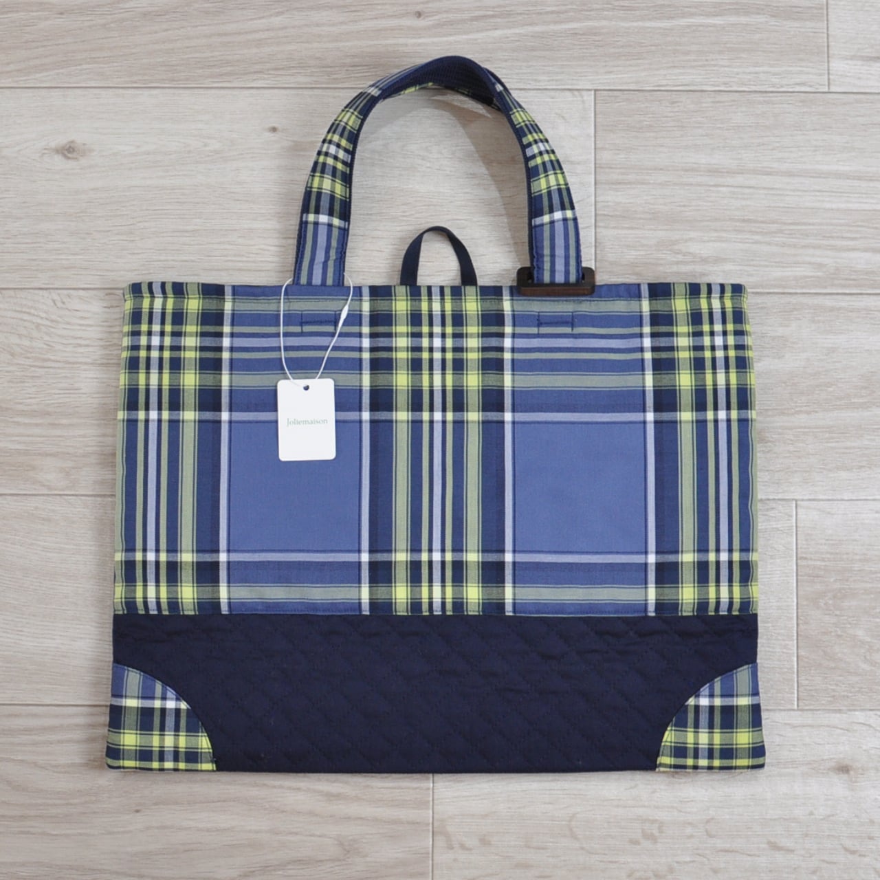 クチュリエチームが贈る最高峰のファブリックバッグ 、ジョリーメゾンのレッスンバッグ(青黄チェック)セット | キッズかばん 絵本バッグ 通園バッグ